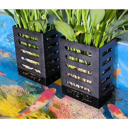 2 PCS Hanging Aquarium Planter Cups, Aquatic Plants Holder, Aquarium Planter Cup, Aquarium Decorations Plants Pot and Fish Tank Plants Pot for Live Aquarium Decor (Black-2 PCS)