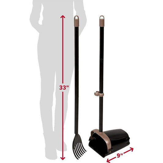 Pooper Scooper Swivel Bin & Rake Dog Poop Scooper, Black (2 Scented Waste Bags Included)